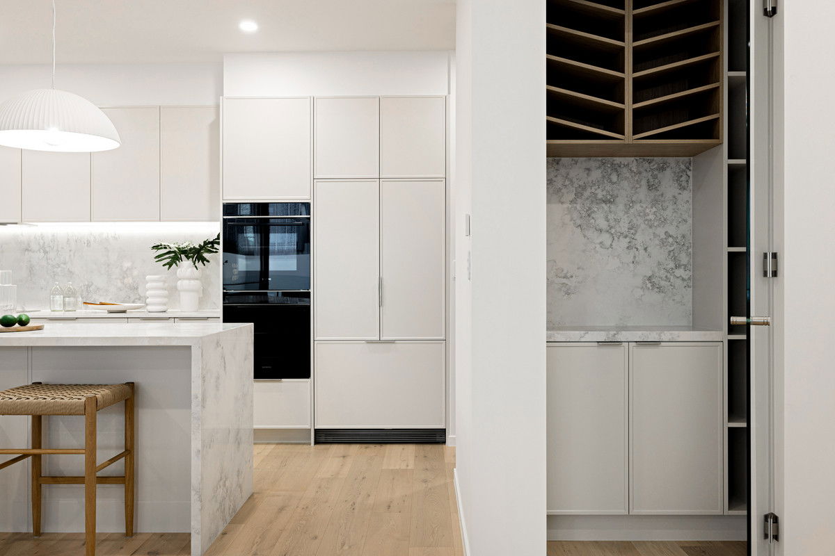 – Gourmet kitchen with marble waterfall island & walk-in pantry