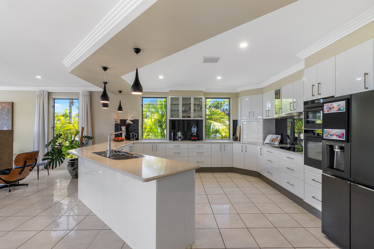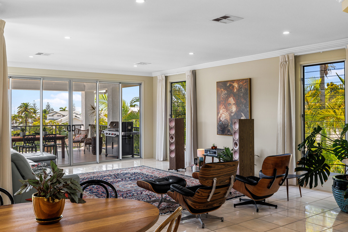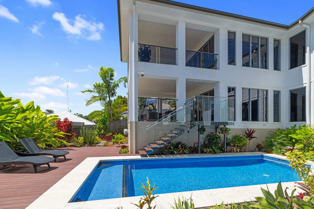 Indoor living flows seamlessly outdoors to multiple balconies, a private patio and a heated, saltwater swimming pool finished with quality tiling. Additional lifestyle features include an outdoor shower, irrigation, landscaped gardens with smart LED lighting and a full-house water filtration system. A high-clearance, oversized two-car garage provides excellent additional storage, complemented by ample cupboards, multiple storage zones and the home featuring central vacuuming throughout.