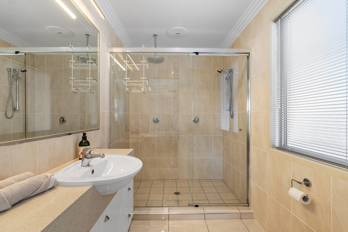 Accommodation is generous and well-considered, with four bedrooms plus a study, including an expansive master suite which will simply take your breath away. Three additional bedrooms feature walk-in robes and private ensuites in two, each finished with quality fixtures. The main master suite is a true retreat, complete with a spa bath, double shower with waterfall rain heads and his-and-hers basins. Pure wool carpets in all bedrooms add warmth and comfort throughout.