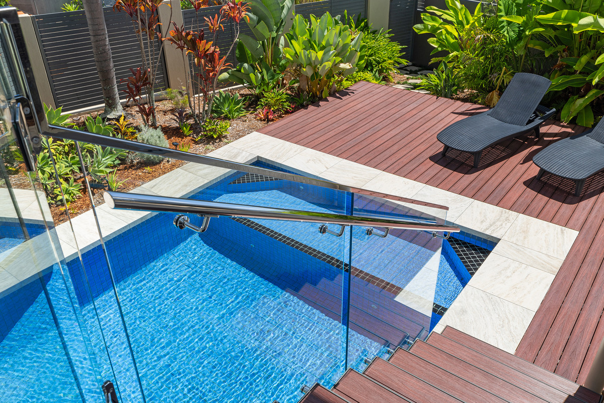 – Pool & outdoor living: Solar-heated, saltwater swimming pool, outdoor shower, irrigation and tiled surrounds