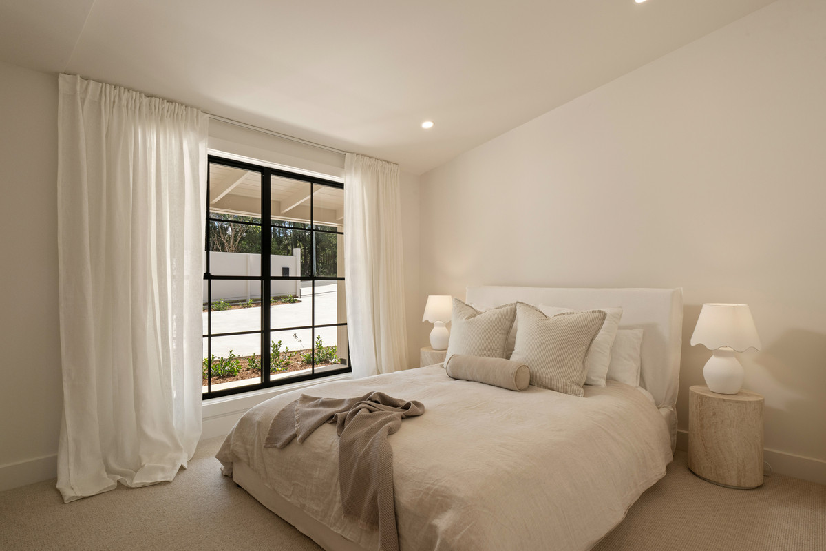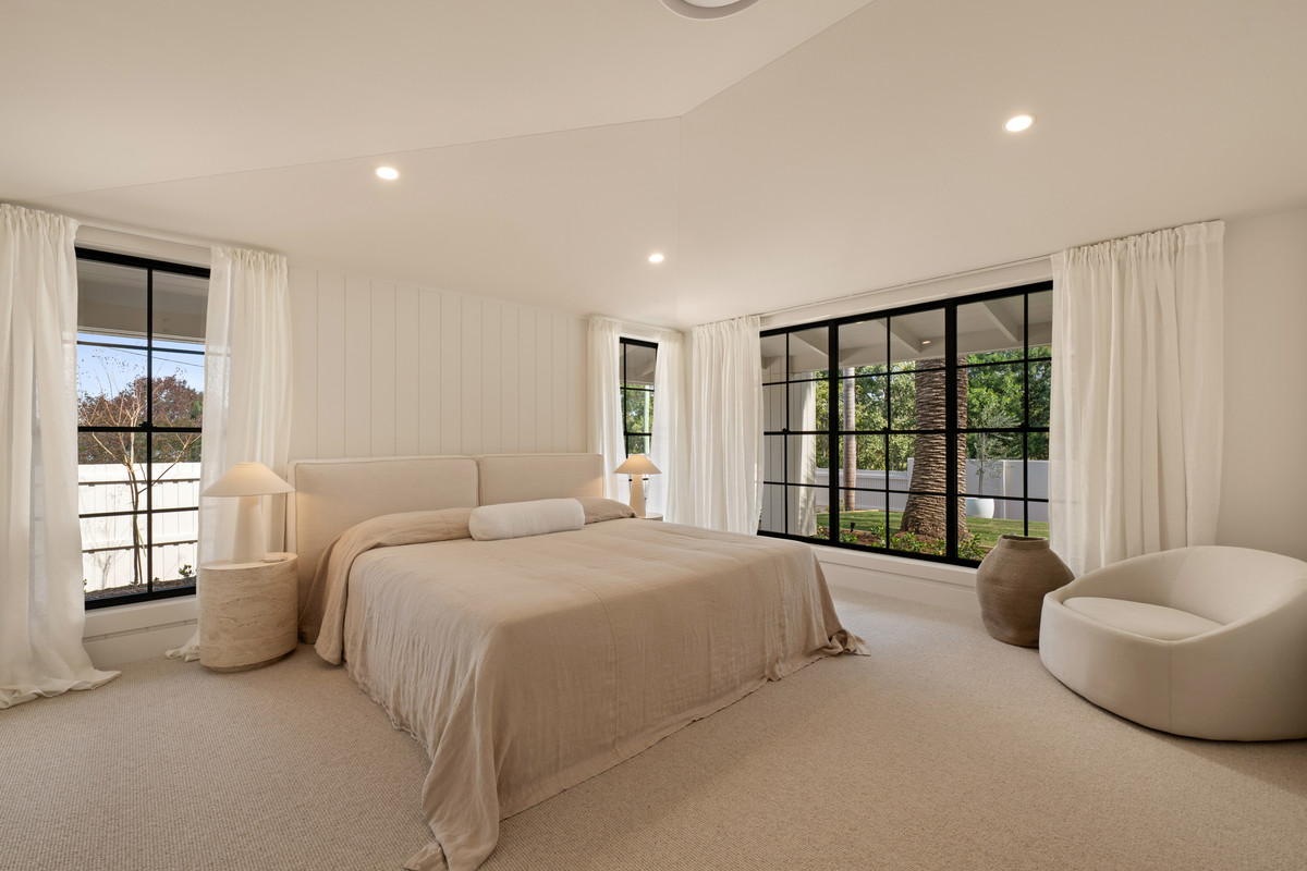 Every detail of this property has been carefully considered to create a home that is both functional and inspiring. Soaring raked ceilings, VJ panelling, and black steel-framed French doors complement a warm, natural palette of European oak flooring, wool carpets, and designer lighting. The result is a residence that feels timeless yet contemporary, luxurious yet inviting.