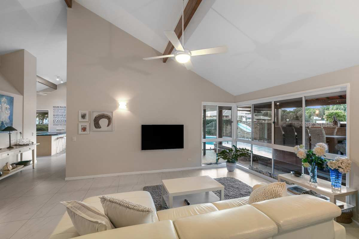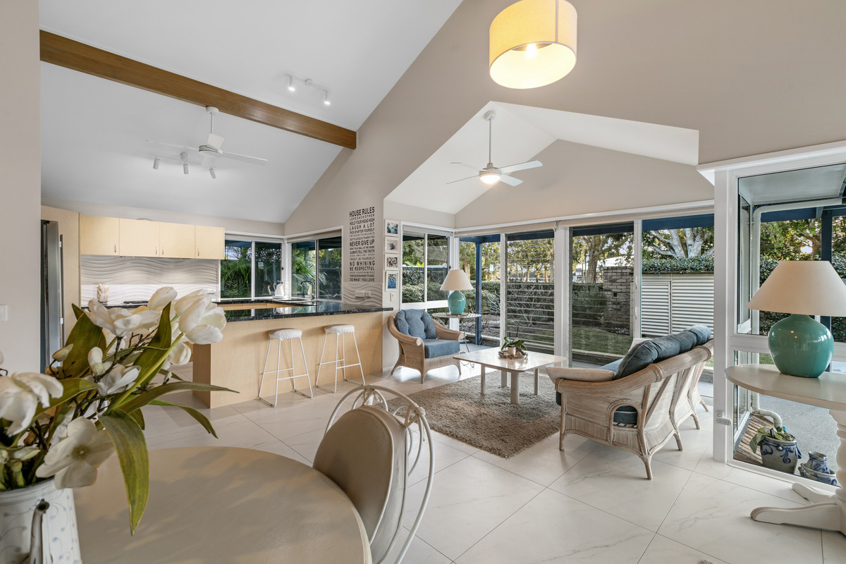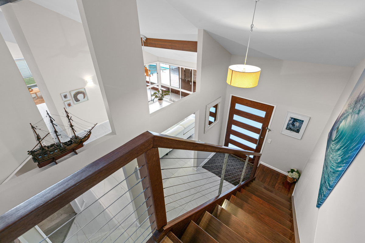 Welcome to 15 Mooloolah Drive, Minyama – a master-built, architect-designed riverside home by the renowned designer David Homan. This stunning residence showcases impeccable craftsmanship with high raked ceilings and has been meticulously refurbished both inside and out to meet the highest standards of modern living.