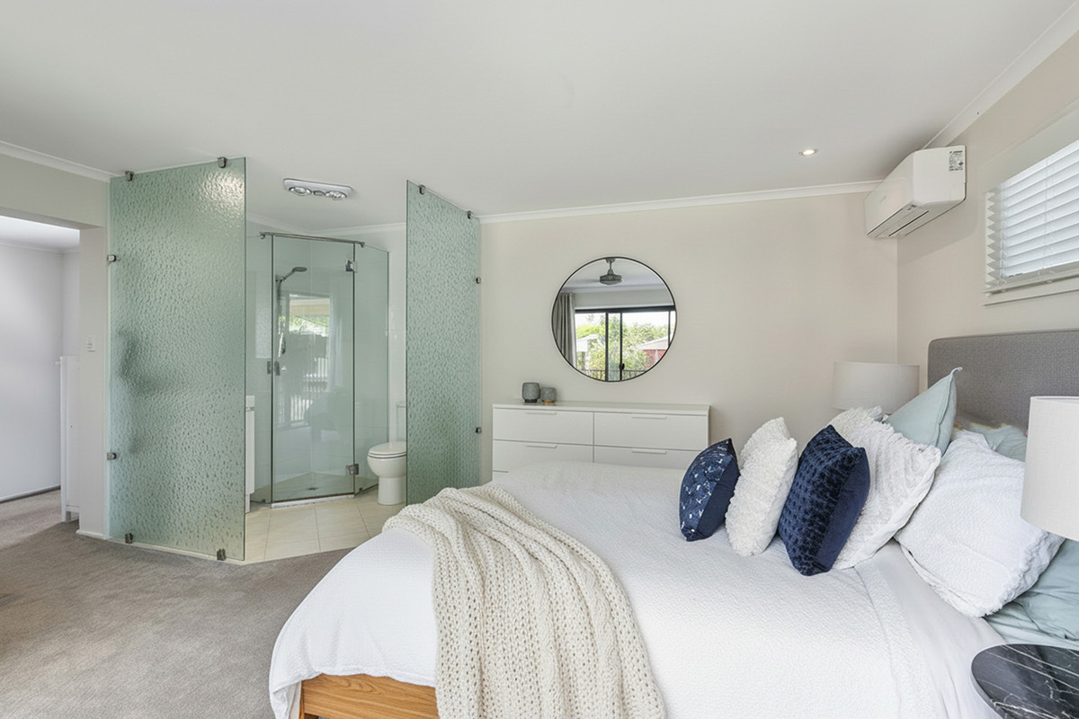 Accommodation is well considered, with three bedrooms positioned away from the main living areas for privacy. The master suite features its own ensuite and dressing area, while the remaining bedrooms are serviced by a central bathroom and separate amenities. Practical inclusions such as a dedicated laundry, linen storage and efficient circulation enhance day-to-day functionality.