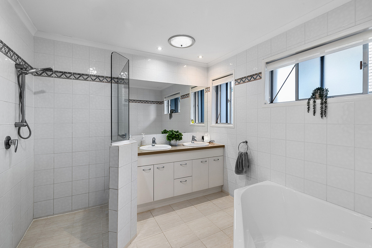 At its heart, a generous open-plan kitchen, dining and living zone is filled with natural light and connects seamlessly to the covered outdoor patio, creating an ideal setting for entertaining or laid-back family living.