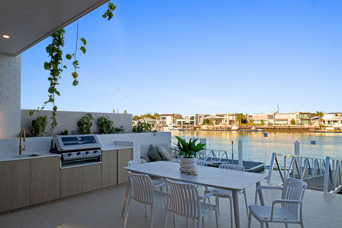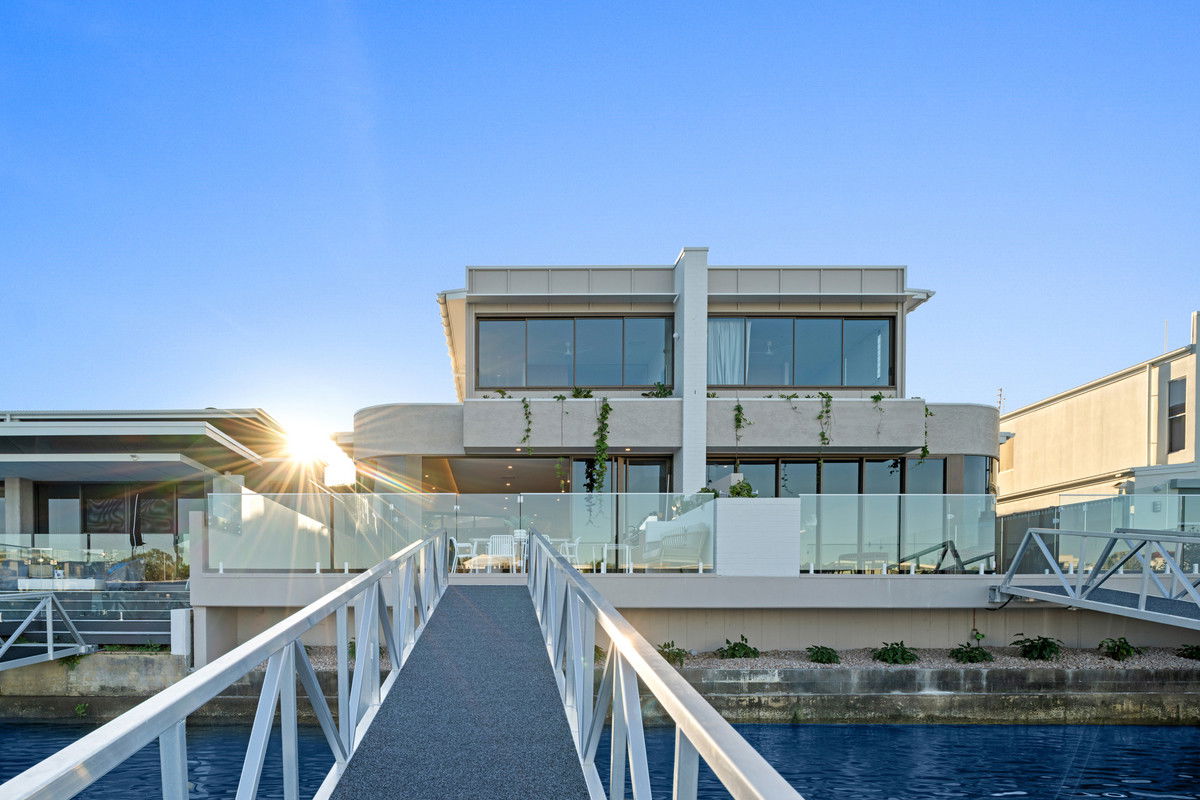 Introducing 2/37 Neerim Drive, Mooloolaba — a rare waterfront retreat facing east to the glistening Mooloolah River, offering a lifestyle of calm, light and elevated coastal luxury. With direct deepwater access and its own private 6m pontoon, this exceptional four-bedroom, four-bathroom home delivers 400m² of architecturally designed living, balancing bold form with refined detail and effortless flow.