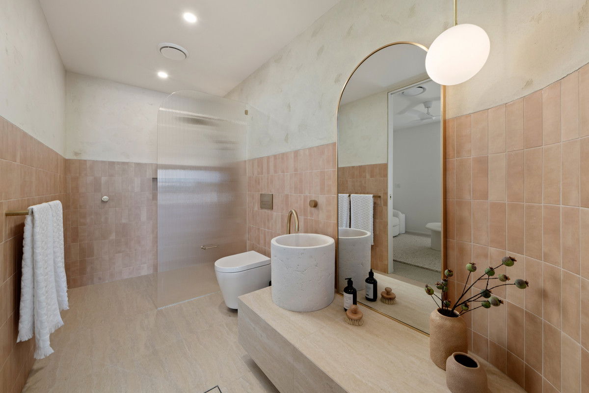 Designed for flexibility, the home offers an ensuited guest bedroom downstairs along with a multipurpose fourth bedroom or media room, plus a stylish two-way bathroom. Upstairs, the master suite is a serene sanctuary with panoramic views, a luxurious open ensuite, walk-in robe and bespoke accessory cabinetry. All bedrooms are generously sized and bathed in natural light, creating a seamless blend of comfort and connection.