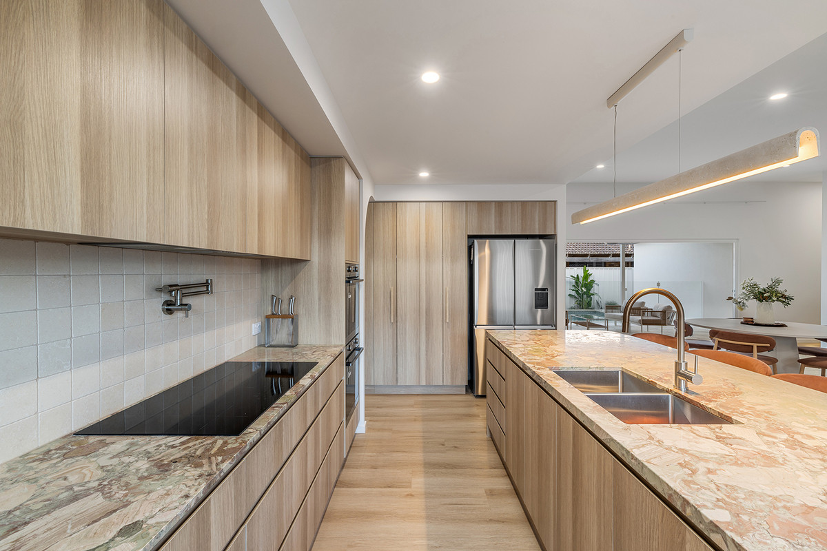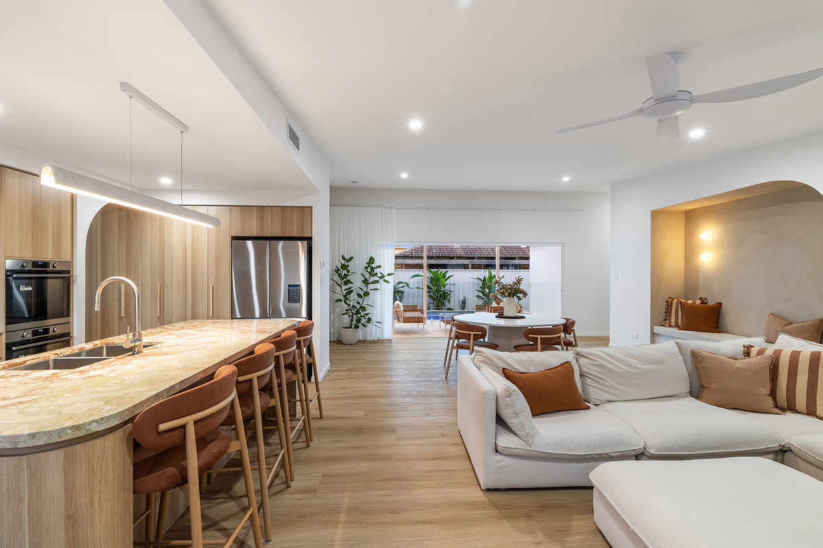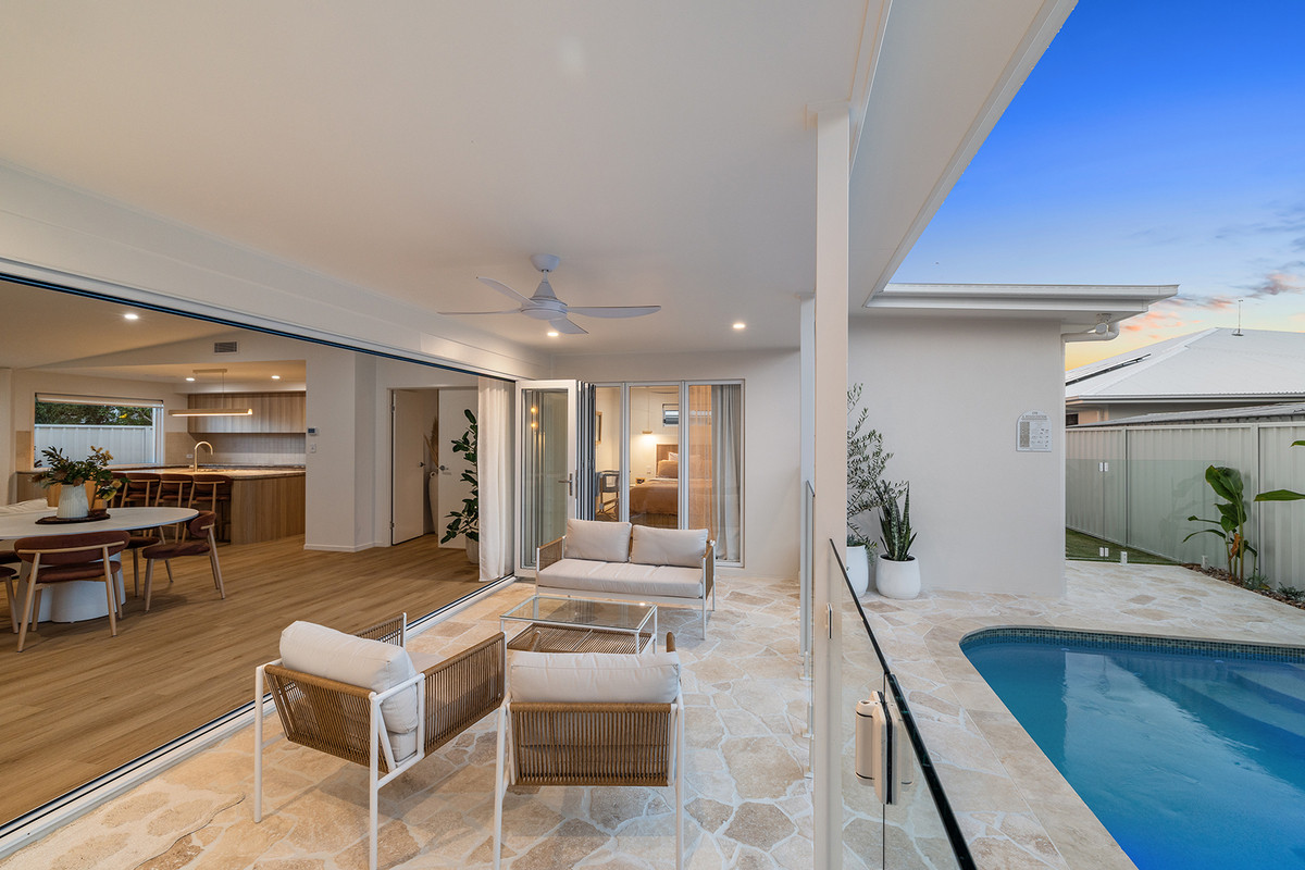 The design centres around connection and flow, with multiple living zones creating separation for families while maintaining a strong link to the outdoors. Coastal laminate timber flooring and striking natural stone elements bring a refined, enduring aesthetic, while ducted air conditioning ensures year-round comfort. The kitchen, complete with butler’s pantry features stunning natural stone benchtops and anchors the home, connecting seamlessly to the living and dining zones. The east-facing alfresco and pool area is a standout, finished with crazy pave travertine flooring and positioned to capture the morning sun, creating a private and inviting space to entertain or unwind. Whether as a primary residence, lock-and-leave weekender or holiday rental, the home offers flexibility that will appeal to both lifestyle buyers and savvy investors.