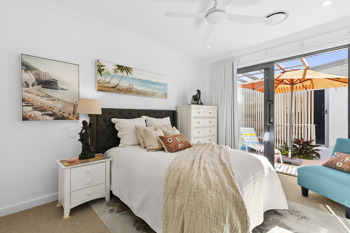 Entertain in the north-east facing covered alfresco with built-in BBQ, fridge, and heating, framed by a tranquil rainforest outlook, or relax in the private front courtyard. Added efficiency comes with rooftop solar for cost savings.