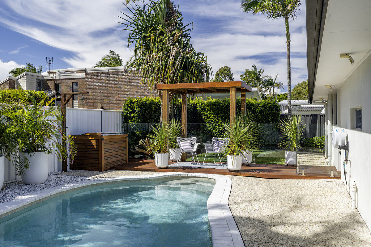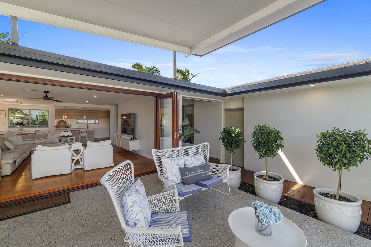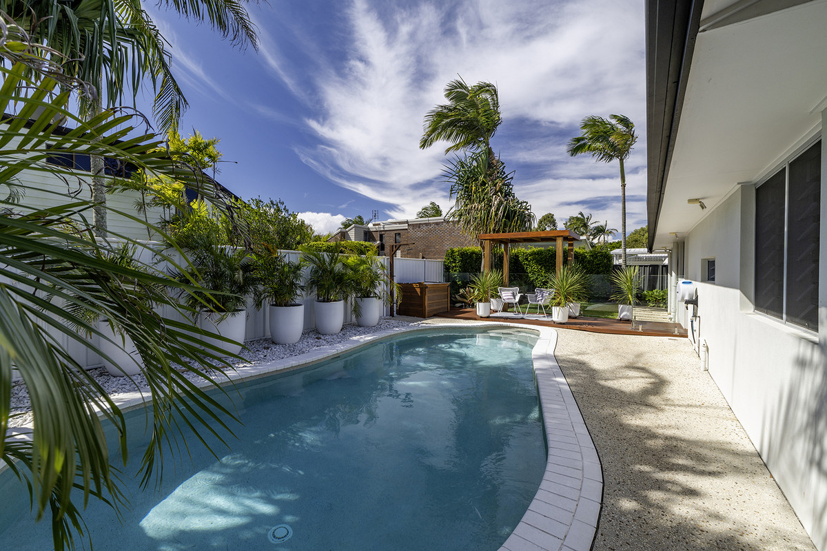 Positioned in the heart of Minyama just a short stroll from the Mooloolah River, this beautifully renovated residence delivers a private, resort-inspired lifestyle on a generous 613m2 parcel.