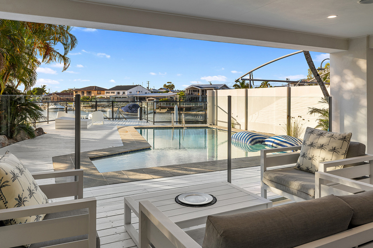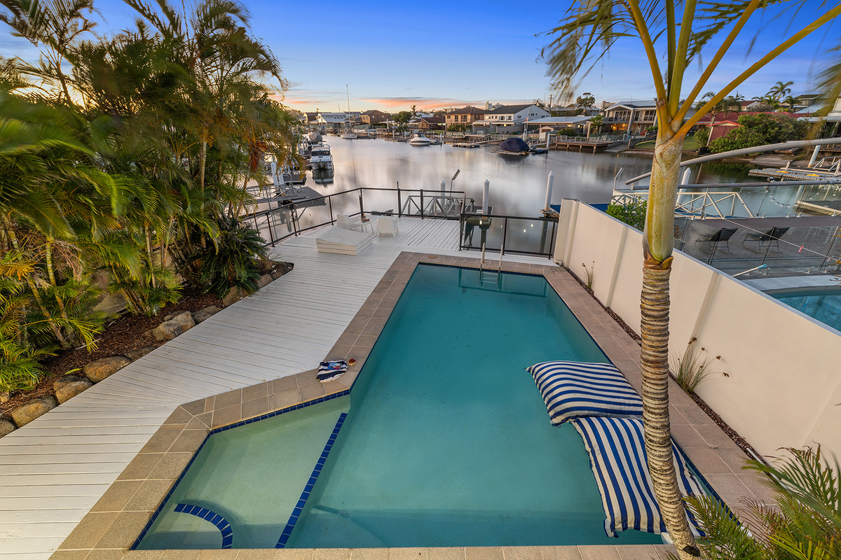 The secondary dwelling provides flexibility for guests, extended family or dual living, enhancing the home’s functionality and appeal. Outdoors, multiple entertaining zones connect effortlessly to the pool and canal, embracing the waterfront setting.