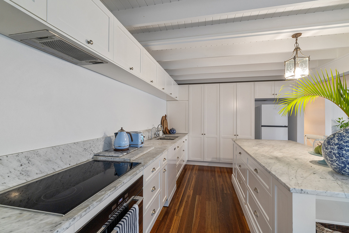 – Designer kitchen with stone benchtops and marble island