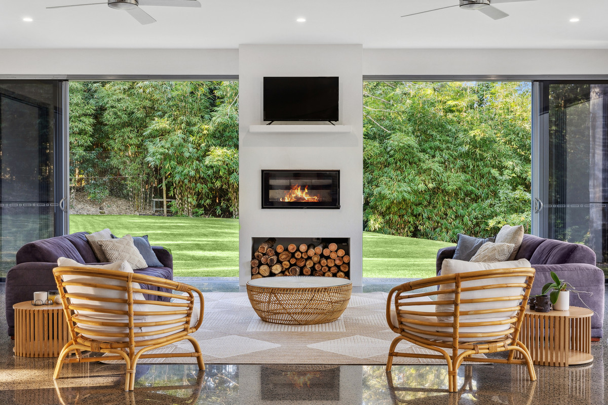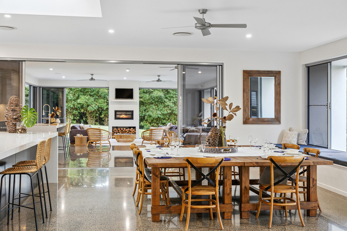 Designed for effortless living and entertaining on a grand scale, the residence reveals expansive open-plan interiors enhanced by soaring ceilings and polished concrete floors. Seamless indoor–outdoor integration connects to a stunning alfresco entertaining zone complete with kitchenette and fireplace — the perfect setting for year-round gatherings.
