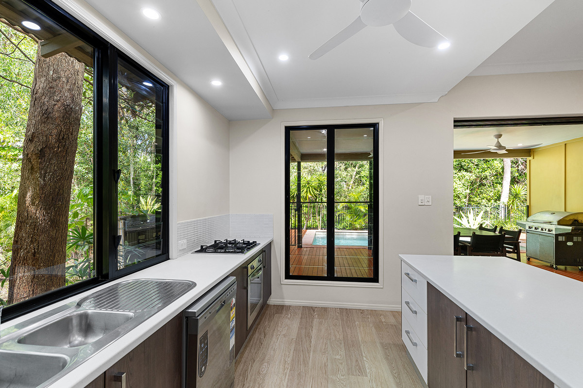 Entertaining comes naturally with two expansive decks cooled by ceiling fans, a woodfired pizza oven, and a sparkling saltwater pool surrounded by lush greenery. Inside, there are four generous bedrooms, two living areas, and a modern gas kitchen to inspire culinary creativity. The master suite is privately positioned with its own ensuite, while storage is covered with two lockable sheds plus a large carport.