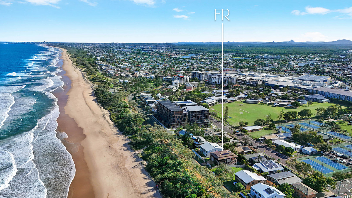 Facing due east, the property enjoys uninterrupted ocean outlooks and cooling sea breezes, with elevated levels also capturing mountain views and sweeping vistas across to Mooloolaba. The outlook is permanent and protected by its premier coastal position.